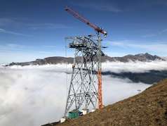 Nach Montage der Stütze 7 der 3S-Bahn wurde der Kran wieder per Helikopter demontiert.