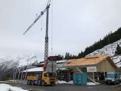 Der Anbau der Bergstation Oeschinenbahn ist beendet, der Kran kann demontiert und ins Tal transportiert werden. Die steile Bergstrasse ist jedoch eine…