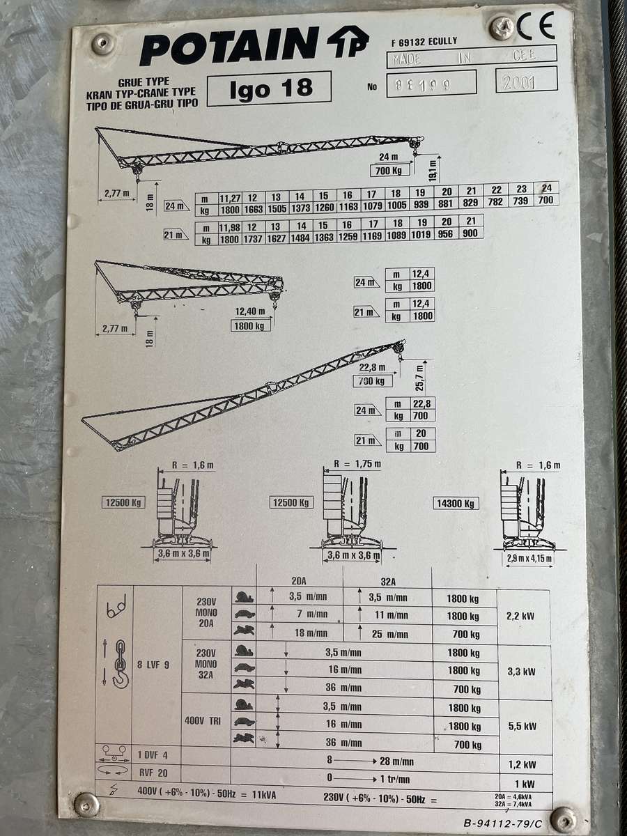 Gebrauchter Potain Igo 18 Turmdrehkran zu verkaufen