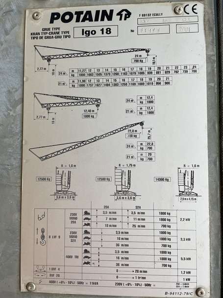 Wir bieten einen gebrauchten Potain Igo 18 Turmdrehkran an, der sich durch seine Zuverlässigkeit und Effizienz auszeichnet: